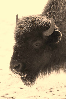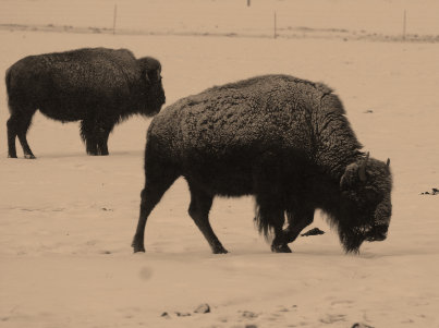 The American Bison was hunted to near extinction by the beginning of the 20th Century. South Park Colorado was once inhabited by thousands of buffalo. A small herd of several hundred remains as a reminder of the past...Its always a breathtaking site to see these hardy animals in the starkness of winter. February 2004